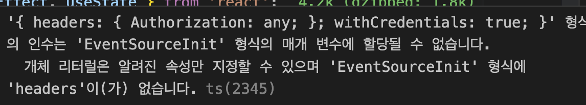 'EventSourceInit'형식에 'headers'이(가) 없습니다.