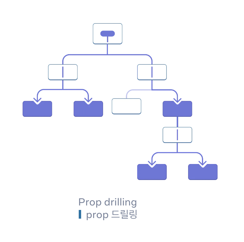 - 트리 깊숙이 prop을 전달해야 하거나 많은 컴포넌트에 동일한 prop이 필요한 경우 prop 전달이 장황하고 불편해질 수 있다.