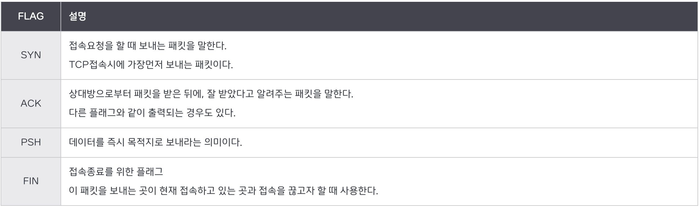 - 이 과정이 3 Way Handshake(통신을 시작할 때)와 4 Way Handshake(통신을 마칠때)과정이다.